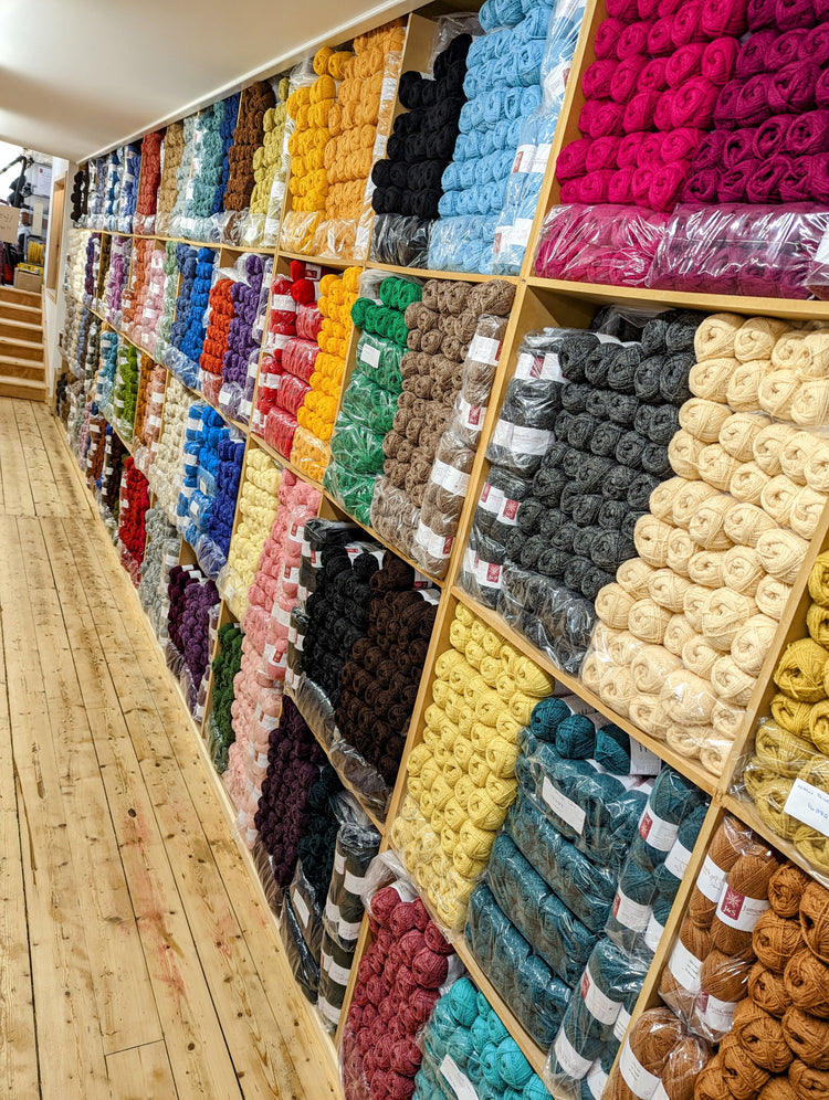 Available in both natural undyed shades and a rich palette of dyed colours inspired by the Shetland landscape, with shades we've been producing since the 1960's.