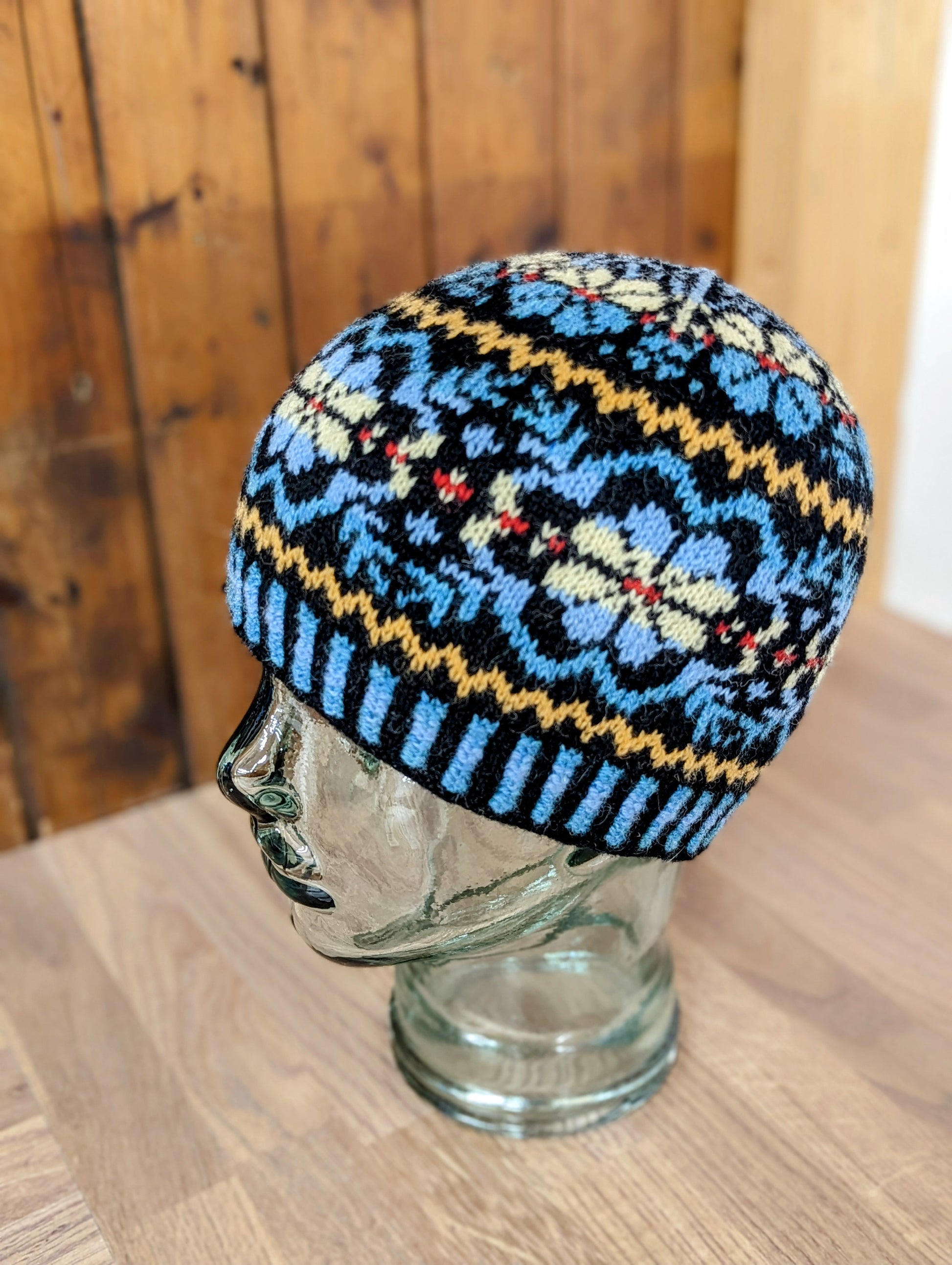 Yarn pack containing all the wool to knit the J&S colourway of the Buggiflooer Beanie designed by the 2023 Wool Week Patron Alison Rendall: 2ply Jumper Weight shades 77 x 2 and 90, FC34, 14, 96 and 9097 x 1 each.