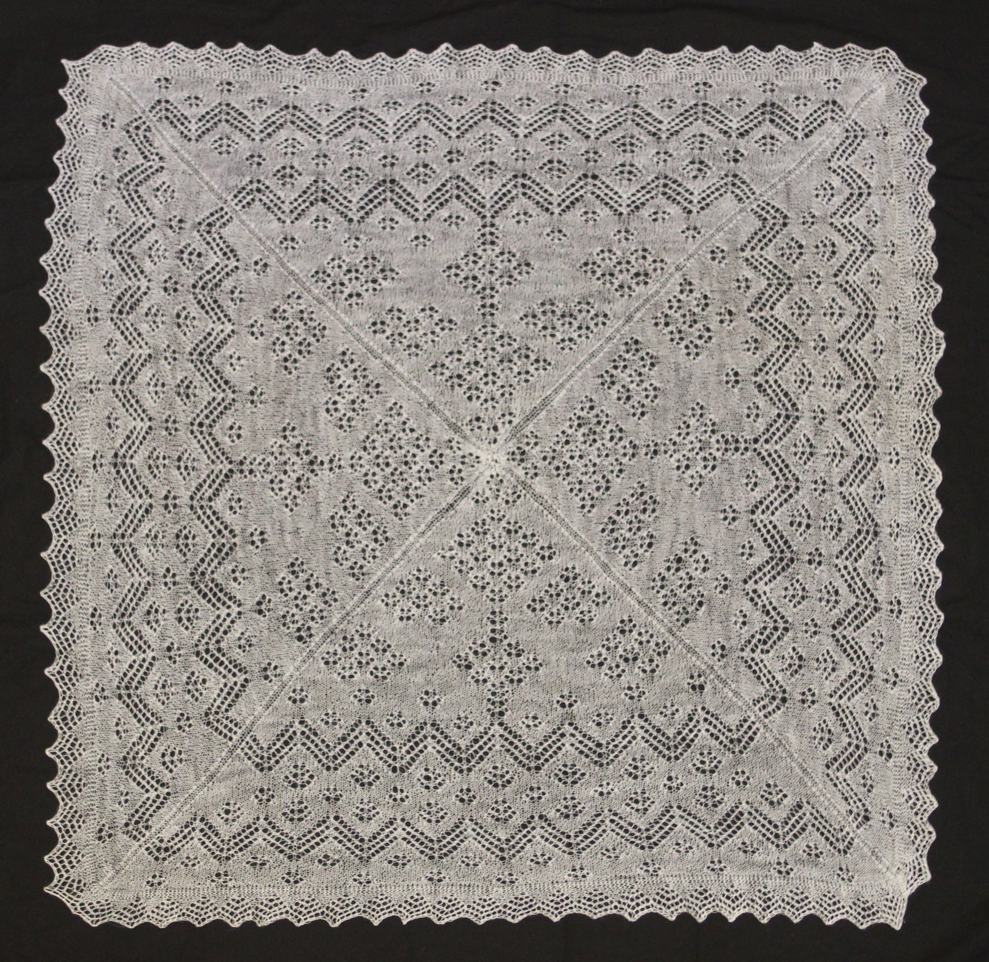 Designed by lace designer Gladys Amedro for Jamieson & Smith Cobweb Lace.This shawl is named after Gibbie Johnson, who managed our woolstore from 1958 until 1989.Knitting begins with the scalloped lace edging and works in towards the centre.Finished size 50î square. Longhand pattern.